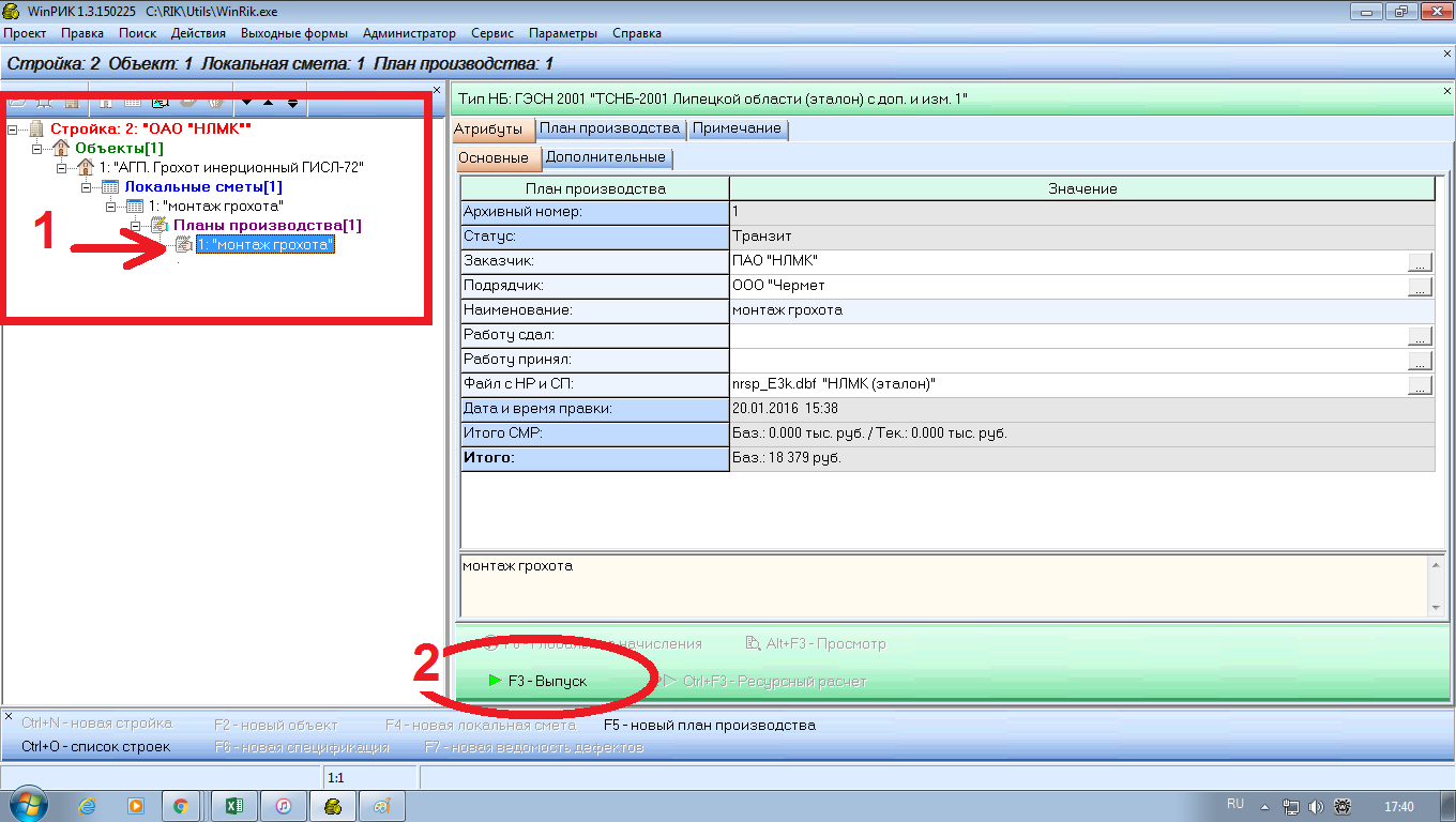 этот инструмент (Выпуск и Внесение объемов...) работает только в РИК