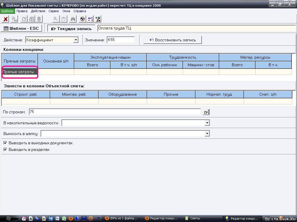 Бриз, И как Вам помочь? Если Вы уже сделали 25 штук, то и еще одну сделаете На фоне базовой концовки добавляйте в самом конце нужные строчки (примерно те, что в моей ссылке выше). Например, пИшете: Зарплата в текущих ценах. Потом заходите в "редактировать", вводите к-т и дело с концом. Только имейте в виду, что в колонке "Прямые затраты" должно стоять - "Прямые затраты". Вот так, как в этой ссылке это должно выглядеть: