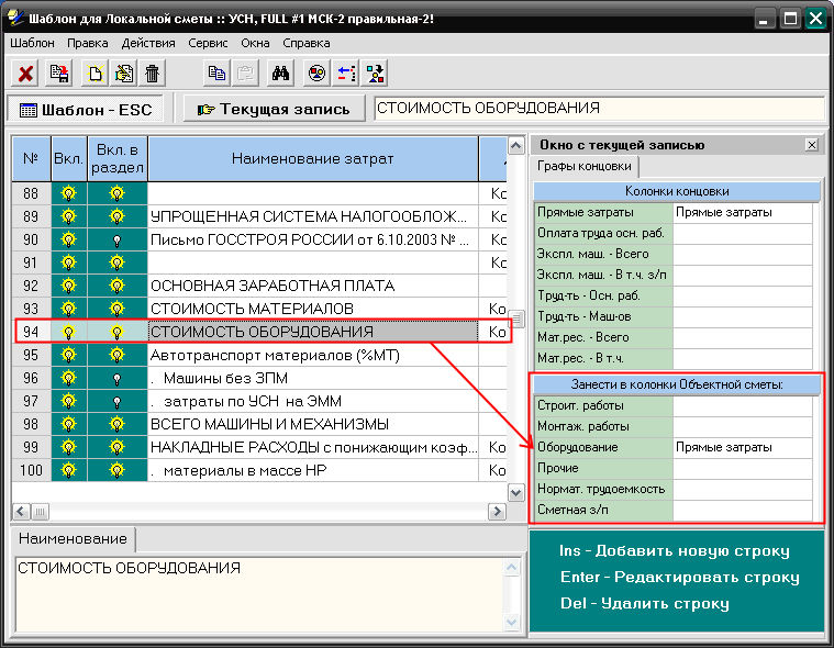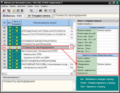 Откройте её в редакторе концовок и пройдитесь по строкам концовки сверху-вниз, при этом в правой панели "Окно с текущей записью" контролируйте секцию "Занести в колонки Объектной сметы":