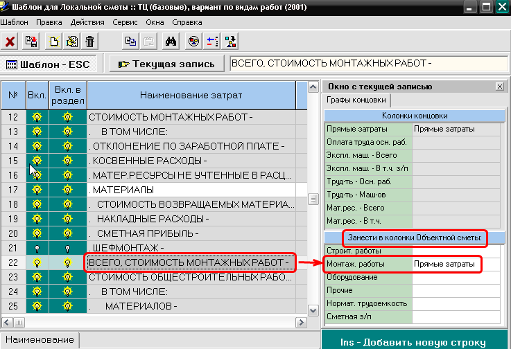 Конечно должно. В первую очередь готовите концовку локальной сметы для передачи корректных значений в графы 4–7 объектной сметы: • открываете концовку для редактирования, отображаете окно с текущей записью (меню "Окна->Окно с текущей записью Ctrl+T"), и отслеживаете/редактируете значения в группе "Занести в колонки Объектной сметы".