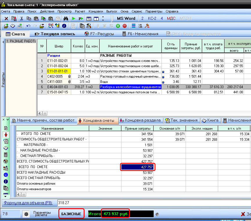Меню "Справка->Инструкции->Как составить смету?" Прочитайте внимательно раздел "ОСНОВНЫЕ ПОНЯТИЯ И ТЕРМИНЫ". Вы найдете там много полезного, в том числе и ответы на поставленные вопросы.