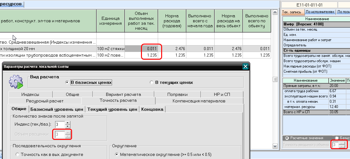 Здравствуйте. Дело в том, что у меня в смете задана точность расчета три цифры после запятой (объем работ). А в плане производства выводится 2 цифры после запятой. Во вкладке точность расчета не могу это подправить, т.к. там точность расчета цены, НР, СП, индекса... Подскажите, пож., как сделать чтобы объемы сметы и плана производства и КС-6 совпадали?