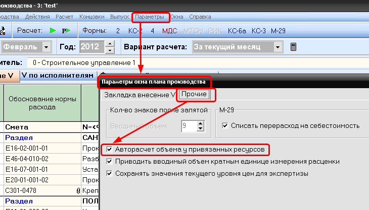 и после введения объема по основной расценке, привязанный ресурс выставится автоматически.
