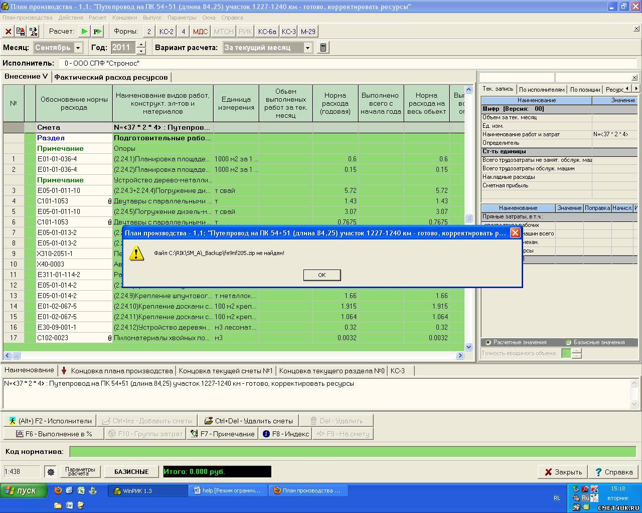 Покажите окно "Выбор директории с архивом apx_0.dbf" Есть подозрение, что Вы, при выборе папки с архивом стройки, указываете папку ...\RIK\SM_A\_Backup, а нужно выбирать ...\RIK\SM_A.