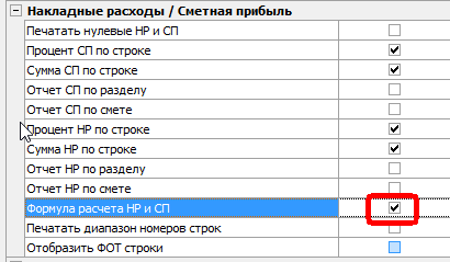 При формировании сметы раскройте Накладные расходы/Сметная прибыль, там поставьте галочку напротив Формула расчета НР и СП