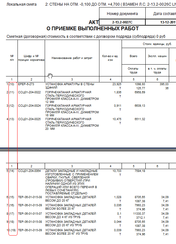 Почему в акте в графе "№ позиции сметы" не пропечатываются номера?