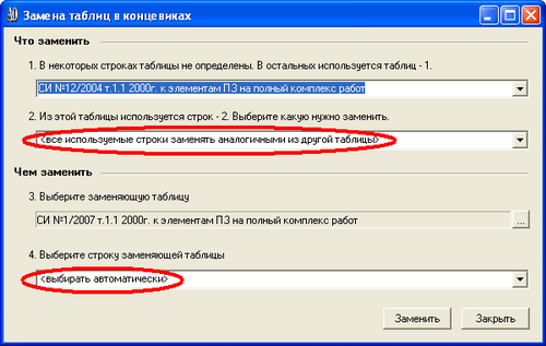 а насчет замены таблиц суть такова: Если в концевиках сметы (разделов) используются разные виды работ, то раньше при операции замены таблиц, надо было заменять саму таблицу и последовательно каждый вид работ. Если виды работ не менялись, а нужно было поменять только коэф-ты по ним, то операция была достаточно трудоемкая. Теперь, достаточно заменить таблицу, а виды работ заменятся автоматически анологичные тем которые были.