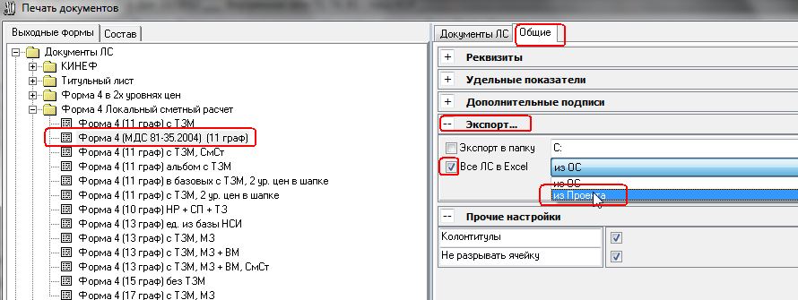 Попытался изобразить на рисунке (прилагаю). В настройках выбираете необходимую форму, далее ставите опцию "Все ЛС в Excel" и вперед! На какой ЛС вы находитесь в проекте, совершенно не важно - будут выгружены все сметы. Внимание!!! Процесс долгий. Рекомендую поставить его на ночь)))