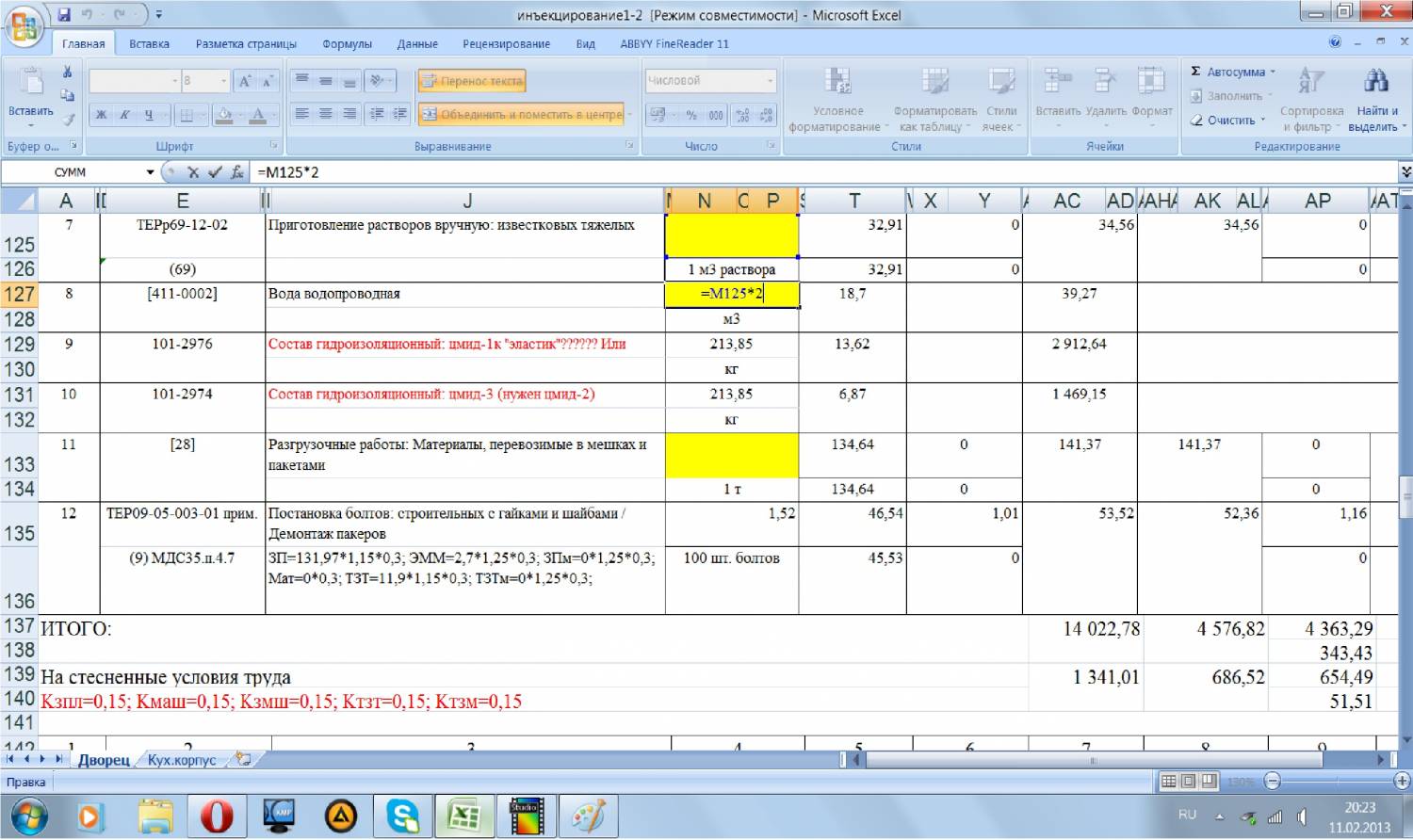 Задам глупый вопрос, но все же рискну: Известны данные: инъекцирование 3400х1600х800 мм в кирпиче, диам. 18Х400, и надо найти объем приготовления раствора вручную: известковых тяжелых. Подскажите, пожааалуйста..... Может вопрос легкий и к вечеру туплю сильно, да еще и второй день только работаю сметчиком, и столько вопросов, что хоть целую тему составляй, а вторая сметчица, которая брала меня помощницей, объяснять ничего не хочет:((( Простите за тираду, но накипело...так обидно:((