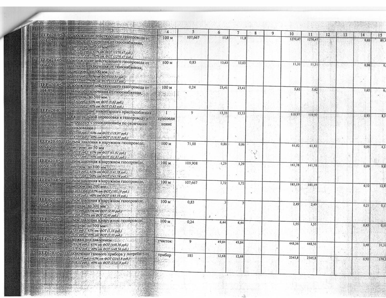 Например ТЕРп20-05-001-01 Отключение потребителей газа перекрытием крана на вводе здания. ТЕРп20-05-003-01 Отключение газового прибора у потребителя ТЕРп20-05-004-01 Освобождение действующего газопровода от газа после отключения от газоснабжения диаметром до 100 мм .... Вообще еще ищу Регламент проведения ремонтных работ на газопроваоде высокого давления, действительно ли надо все эти работы делать? Если поврежден 5 м газопровода, а они пусконаладку до последнего потребителя включают.