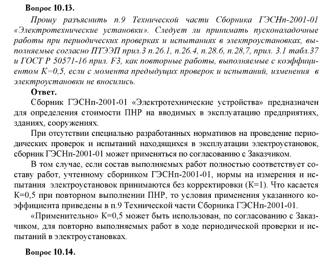 2.6. При выполнении повторных пусконаладочных работ (до сдачи объекта в эксплуатацию) к расценкам соответствующих видов оборудования (работ) необходимо применять коэффициенты,приведенные в технических частях или вводных указаниях сборников.Под повторным выполнением пусконаладочных работ следует понимать работы, вызванные изменением технологического процесса, режима работы оборудования, что связано с частичным изменением проекта, а также вынужденной заменой оборудования. Необходимость в повторном выполнении работдолжна подтверждаться обоснованным заданием (письмом) заказчика.