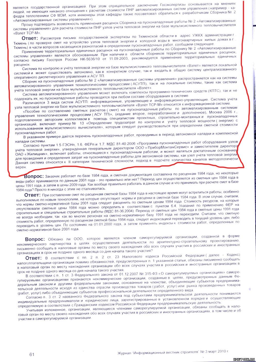umnik, искренне рад за Вас.. Ключевым словом для наших проверяющих является УПРАВЛЕНИЕ, и в этом с ними согласен.. ПНР на "взлет" в качестве информатора занимает до 1-2 часов (со всеми конфигурациями)..И че просить? То..ЧЕ накрутили и выдает ГЭСНп 2? А за ЧТО? Приборы и датчики монтирует и "ПНРит" одна и та же организация.. Бог с Вами. ХоЧите-просите-берите.. ЗЫ из личного общения с разработчиками сборника: слышал оба мнения по инфосистемам.. но они Не несут ответственности за полученные Вами деньги.. ЗЫ 2 Ценообразование носит РЕКОМЕНДАТЕЛЬНЫЙ характер, соответственно ОДНОЗНАЧНОСТИ быть НЕ может..априори...(простой пример-существование ЭТОГО форума)...и ФЛАГ-в руки..