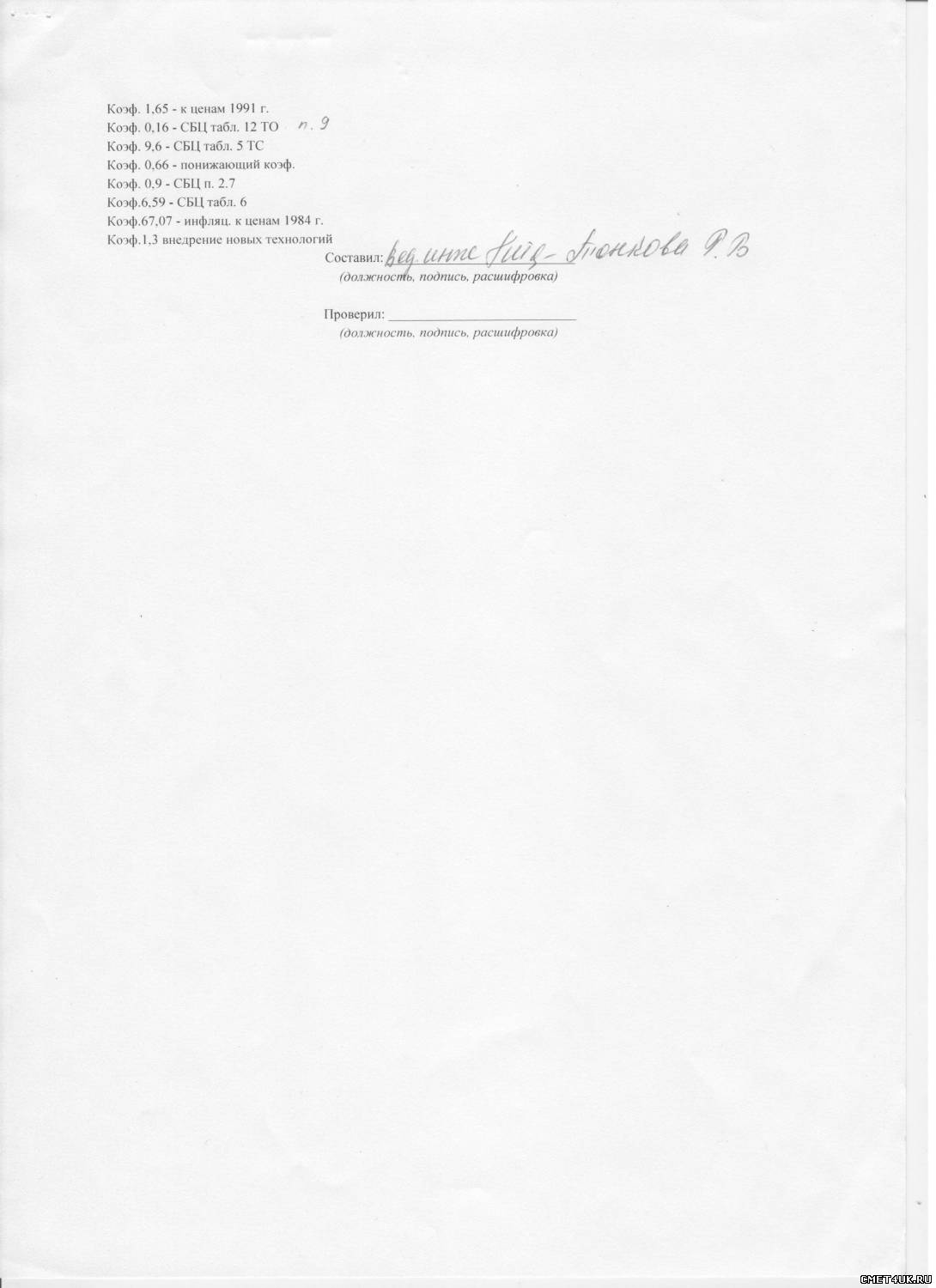 2,5 (10/4) - ГКал/ч - минимальная мощность, которую можем взять по справочнику с понижающим коэффициентом 0,7. 0,7 - коэф на уменьшение натур. показателся меньше табличного в 3-4 раза (см. общие указания сборника , п. 1.8) 0,1 - коэф на объект - аналог, рассчитывается, как 0,0995/2,5. Но поскольку он не м.б. менее 0,1 (см. вопросы-ответы ЦИП 2006 года - вопрос №2), то берем 0,1. 0,9 - коэф. на остутствие условий взрыво-пожароопасности 0,5 - коэф на встроенность по СБЦ ОЖГС (не всегда проходит, а если не пройдет - цена в 2 раза вырастет, если что, можно договориться применять на часть разделов проектной документации - см. в той же таблице, что и расценки на ИТП - чуть правее расценок 1041 и 4,14).