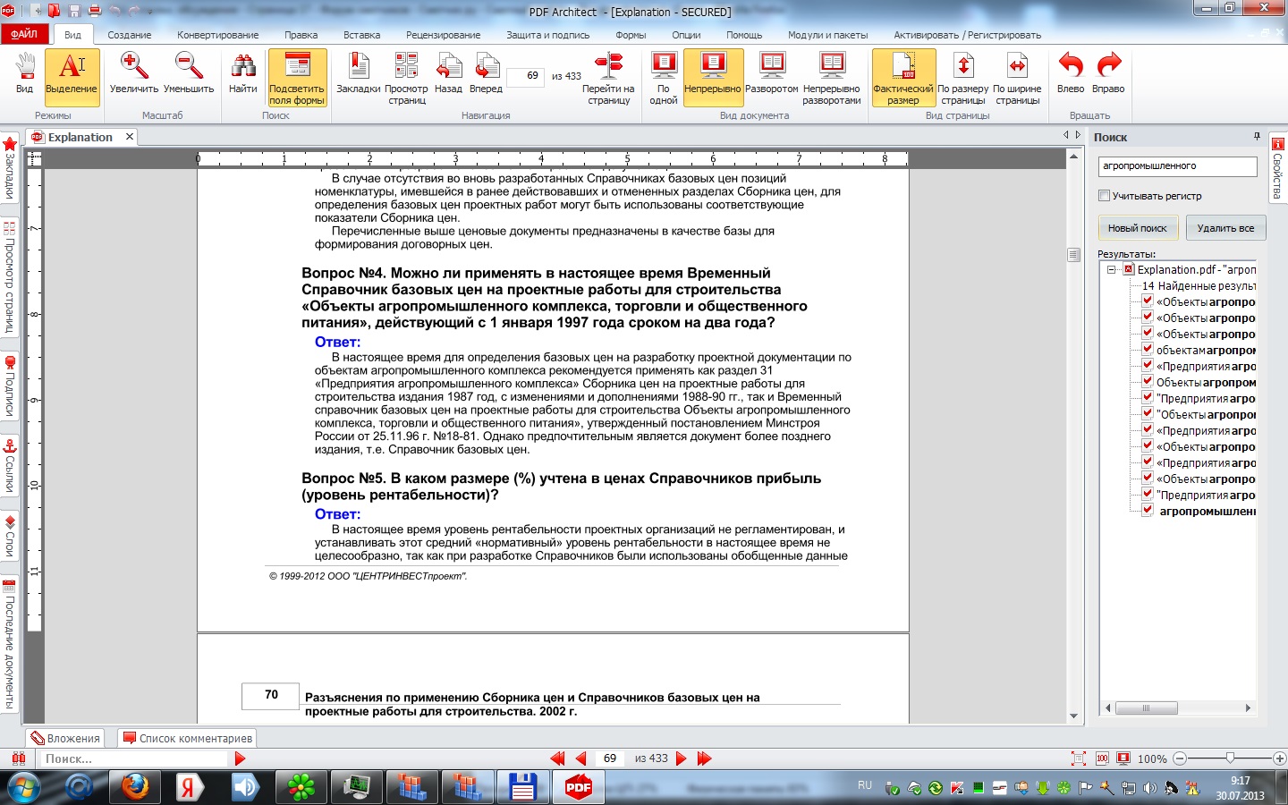 Добрый день, друзья! Подскажите, пожалуйста, имеется ли какая нибудь информация относительно Справочника базовых цен на проектные работы для строительства «Объекты агропромышленного комплекса, торговли и общественного питания» изданного в 1996г. В Справочнике значится, что он действует 2 года, начиная от 01.01.1997г. Однако, на многих сайтах ему присвоен статус "действующий". (вот пример:http://snipov.net/download/c_4641_snip_99154.html). Кроме того, в Федеральном реестре сметных нормативов дата внесения в реестр - 15.12.2009г - значит ли это что в 2009 году было обновление справочника?