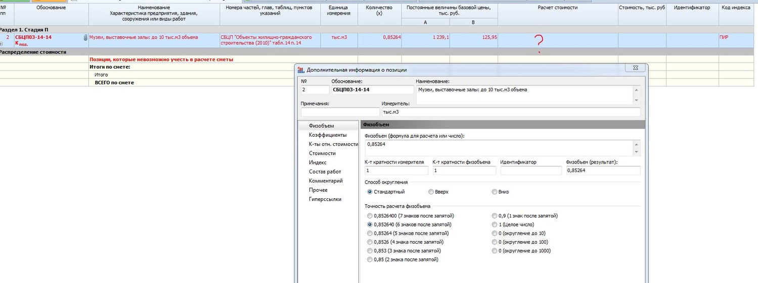 я прекрасно понимаю, что стоимость в тыс. руб, получается на выходе в моем случае: (1239,1+125,95*0,85264)*0,4*4,53=2,44тыс.руб. Вы хотите сказать, что проектирование музея в обьеме 852,64м3 будет стоить 2 440руб (без НДС)?
