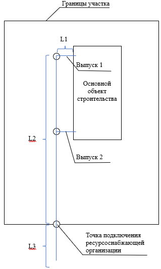 Комментарий УчастокL1 должен быть не более 50 м. Сумма L1 может быть больше 50 м (например, 10 выпусков по 49 м, всего 490 м выпусков). Проектирование участков ∑L1 учтена в цене НЗ на проектирование объекта. УчастокL2 относится к объёму, который включается в смету на проектирование как проектирование наружных сетей. Примечание: системы водоотведения поверхностные вод, дренажная сеть по территории участка до точки подключения включается в смету на проектирование как проектирование наружных сетей. Участок L3 относится к объёму, который выполняет ресурсоснабжающая организация (не включается в смету на проектирование объекта).