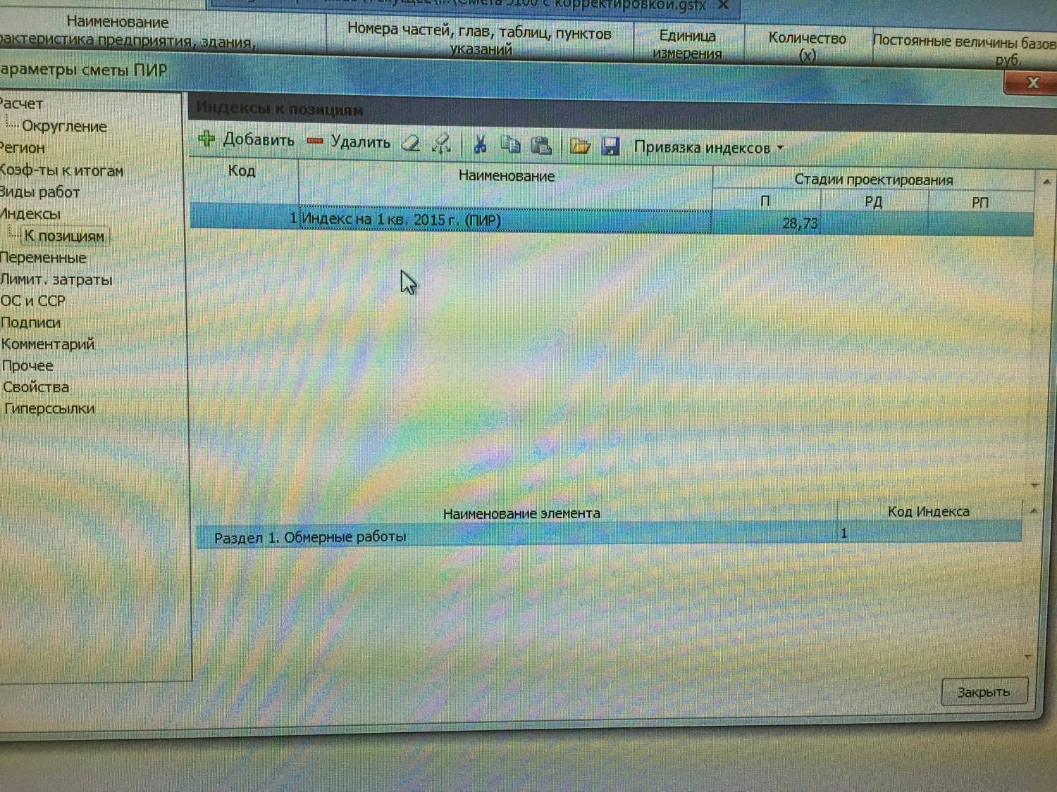 Это форма гранд-сметы: параметры:индексы к позициям и нужно указать индекс перевода в текущие цены