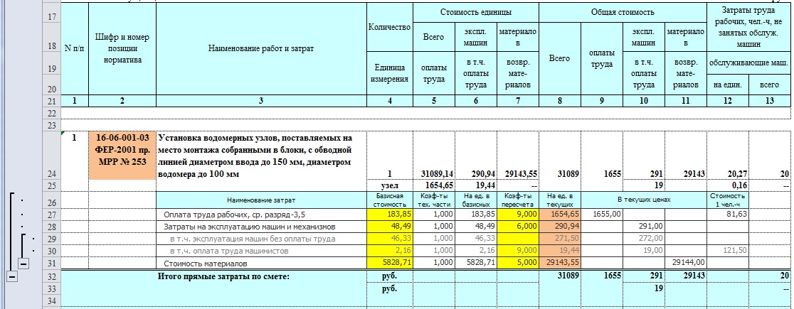 Использованы нормы ФЕР, для перехода в текущие цены использованы следующие числовые параметры: