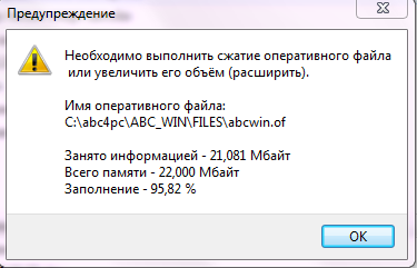 Добрый день! Как выполнить сжатие оперативного файла или увеличить его объем без потерь данных? Версия 4.2.3.2 Прикрепила предупреждение.