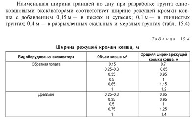 ширину дна траншеи не знаю как брать в СП45.13330.2012 прочитал но не понял