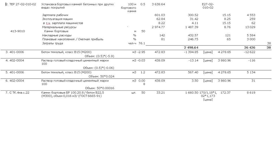 То есть в моей смете на укладку бордюров, проверяющие органы из расценки вычитают бетон и раствор и добавляют в меньших пропорциях. Получается, что на 1 метр укладки бордюрного камня, согласно расценке, идет 0,059 М3 бетона, а проверяющие органы считают, что должно уходить 0,024, также и по раствору, по расценке 0,0006, и 0,00016 соответственно. Понятно, что денег хотят дать меньше, вопрос: на каком основании? Проекта на укладку бордюра нет, работы производятся на основании дефектного акта, ннормативы надо брать из ГЭСН. Откуда такой расход бетона и раствора? Может кто подскажет?