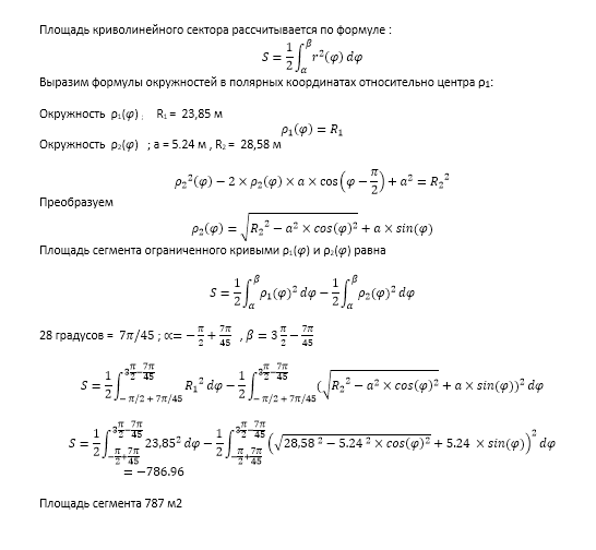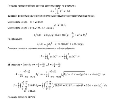 В плане дана конструкция чаши фонтана, визуально напоминает полумесяц. Вот https://cloud.mail.ru/public/EJV1/MaubMLVX4 Думали как считать ее площадь. По идее это круг вписанный в круг, т.о. у нас даны два радиуса. Мы можем вычислить площадь каждого круга по отдельности, зная радиус каждого из них, а потом вычесть площадь одного круга из площади другого, надеясь, что получили площадь чаши (полумесяца). Но так ли это? Формулы для вычисления сегмента круга и полукруга, как вы понимаете не подходят, так в обоих случаях у нас была бы хорда, а не вторая дуга. Вот такая заковыка. Помогите разобраться.
