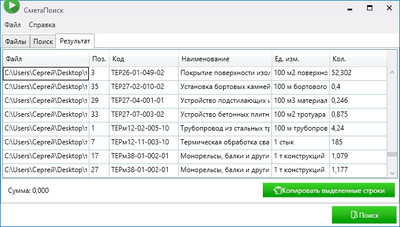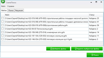 Программа для выбора необходимых позиций из смет в формате ГрандСмета и Excel. Ищет по коду расценки и/или наименованию. Также ищет в материалах к позициям.