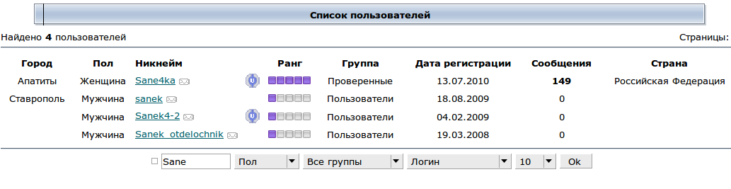 А никак не сделать поиск участника сайта по нику? А то человек ссайта уже ушел, а надо ему написать ЛС, и не нашла его в пользователях как ни старалась
