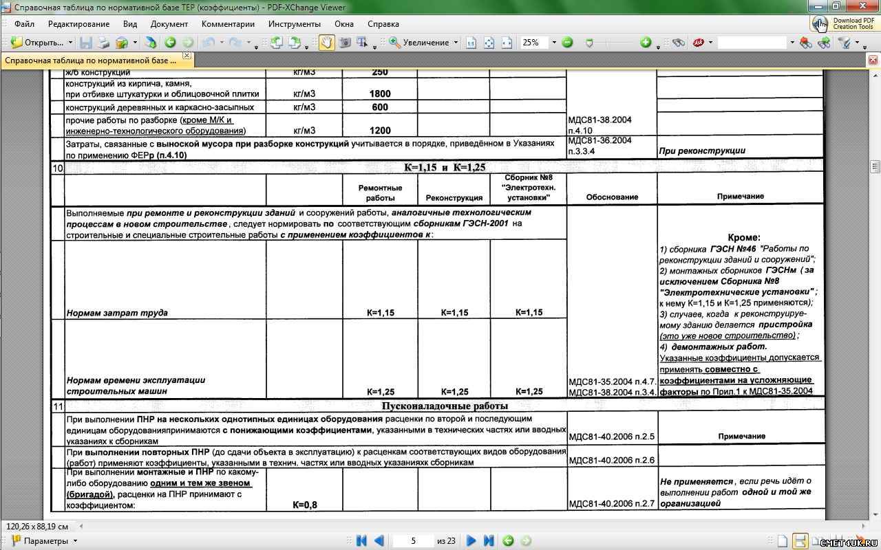 Коэффициенты 1,15 и 1,25 при ремонте и реконструкции