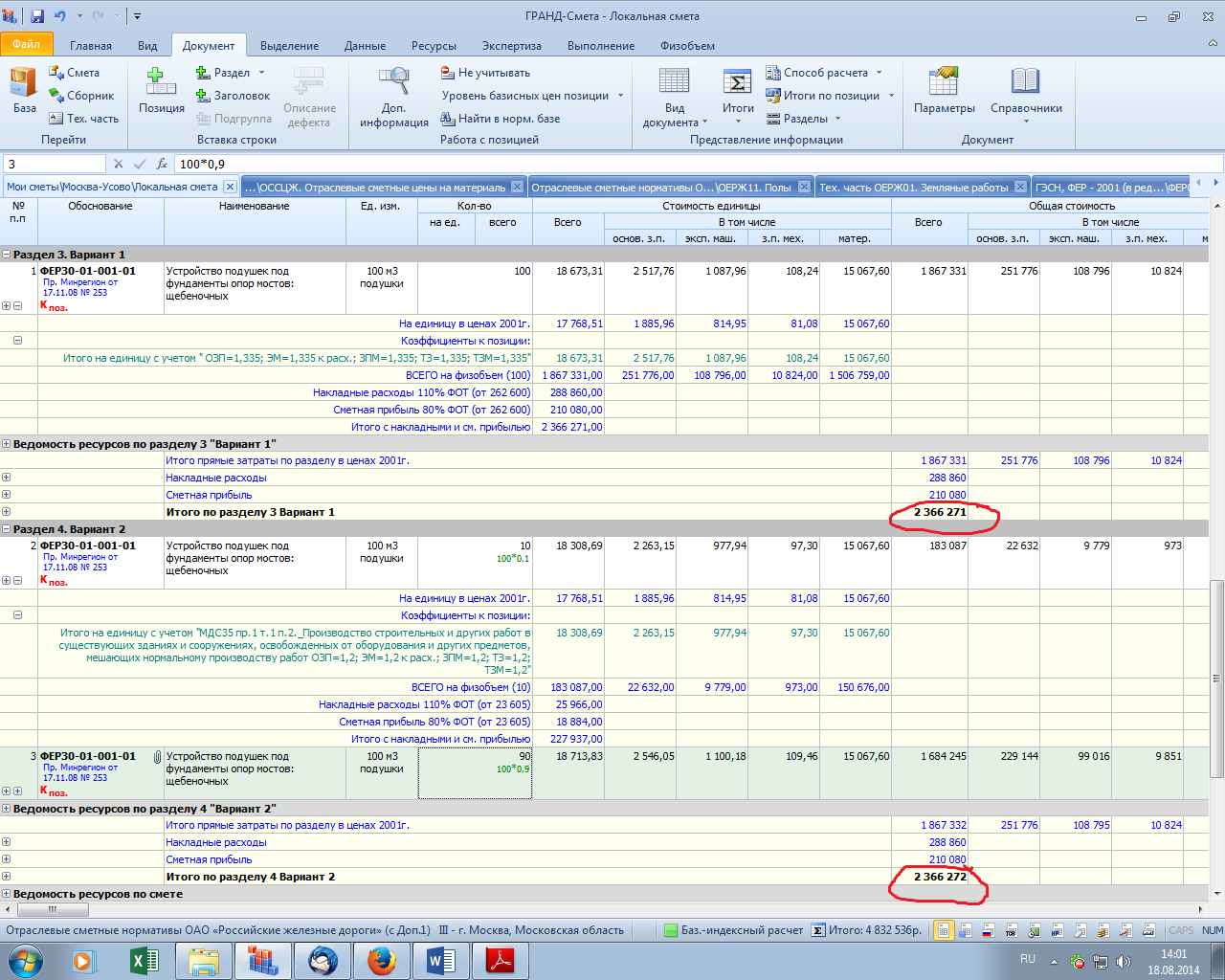 Poinwonderland, мне надо так, как у меня сделано Ведь это же то же самое, если я сначала в одном разделе объём работ по каждой позиции из спецификации умножу на 0,1 и применю к этому разделу коэф-т на стеснённость 1,2; а потом следом создам в смете такой же раздел, объёмы работ умножу на 0,9 и применю к разделу К=1,35 на стесн, они же всё равно сложатся в итогах...