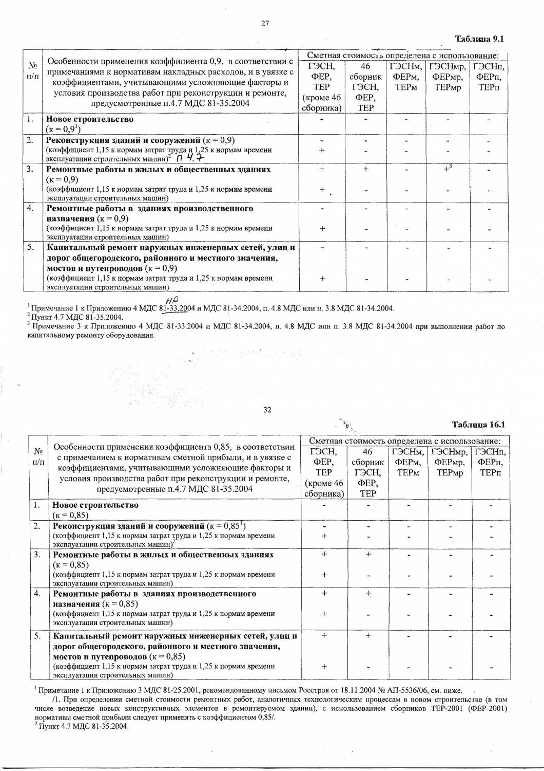 Да я прочитала это письмо (Примечания: 1. При определении сметной стоимости ремонтных работ, аналогичных технологическим процессам в новом строительстве (в том числе возведение новых конструктивных элементов в ремонтируемом здании), с использованием сборников ТЕР-2001 (ФЕР-2001) нормативы сметной прибыли следует применять с коэффициентом 0,85.) Значит пониж.Кф ипользуется только для сборников ТЕР, ФЕР, а к сборникам ГЭСН?