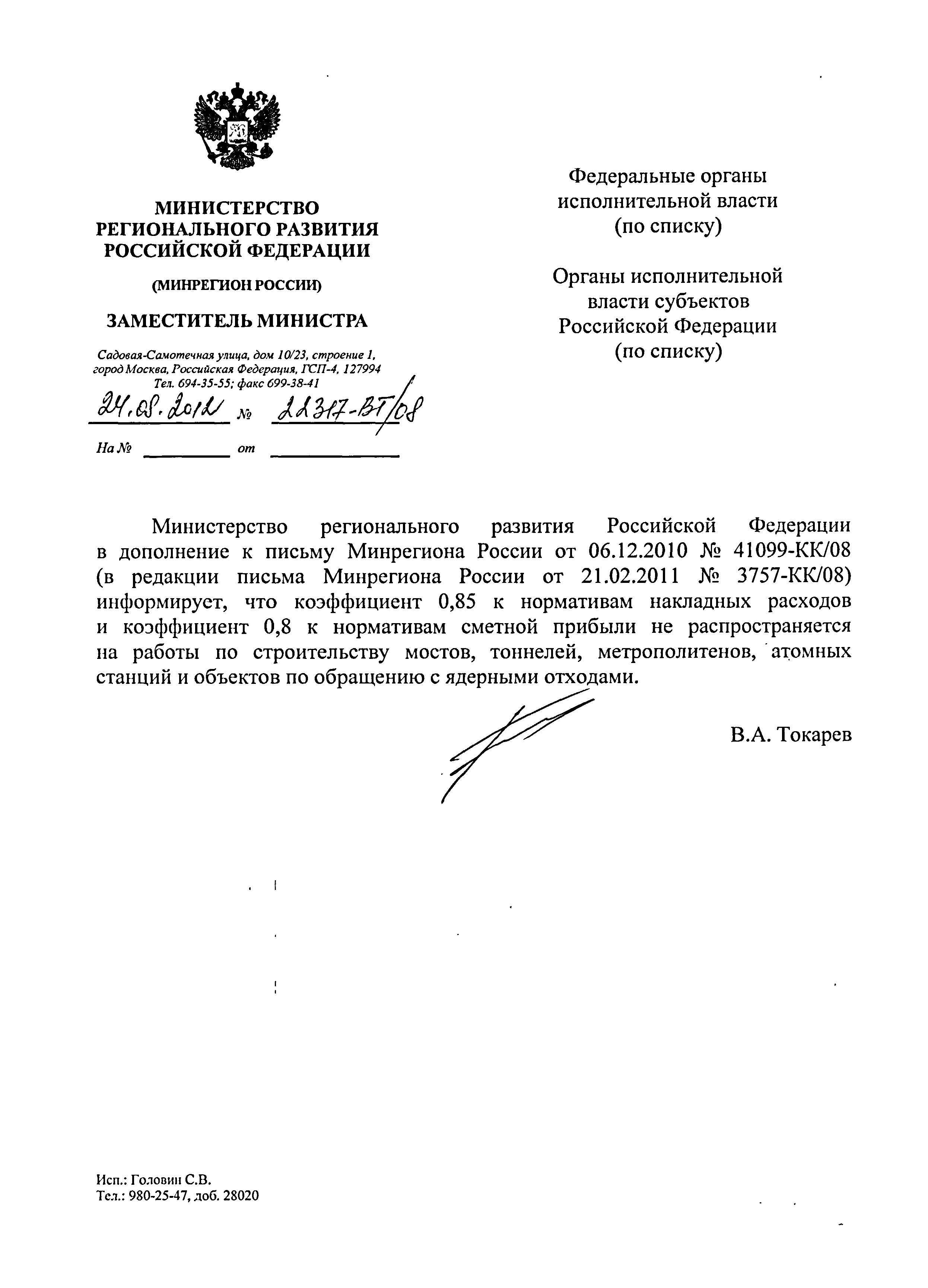 Ранее вышедшие письма от 06.12.2010 № 41099-КК/08, 21.02.2011 № 3757-КК/08, 17.03.2011 № 6056-ИП/08, 09.06.2011 № 15127-ИП/08, 28.07.2011 № 20246-АП/08 и 24.08.2012 № 22317-ВТ/08 отозваны письмом Минрегиона от 26.11.2012 № 29630-ВК/19: http://www.faufccs.ru/documents/1221/72135/