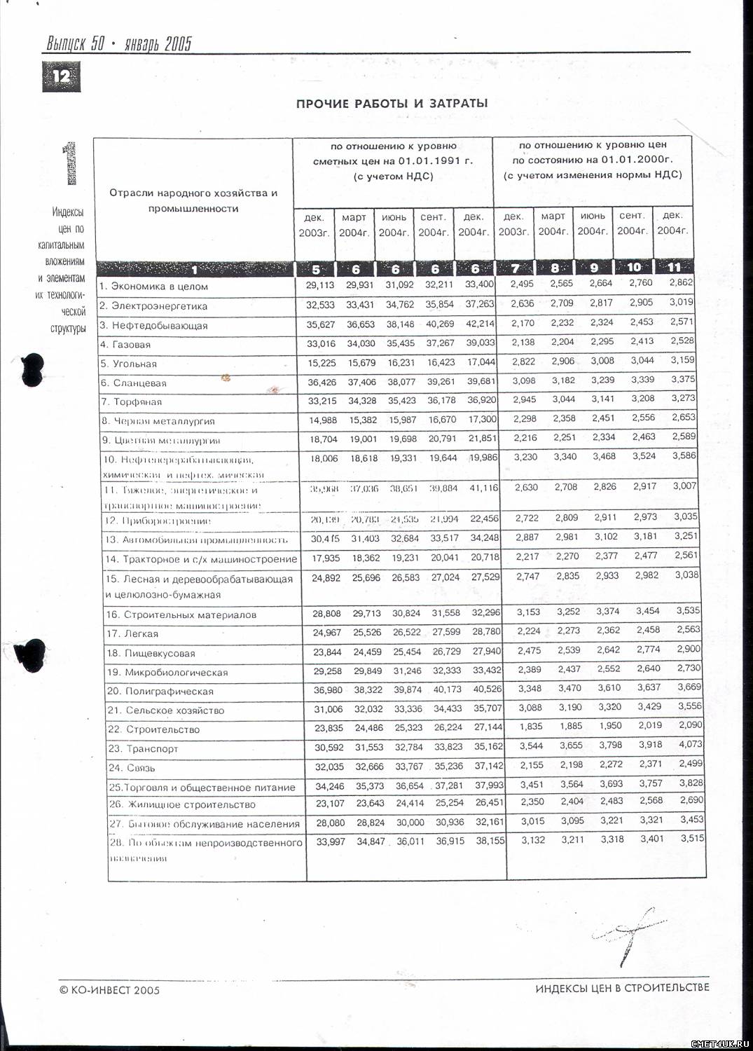 Ищу индексы СМР, Оборудование, Прочие расходы для 1 кв 2005