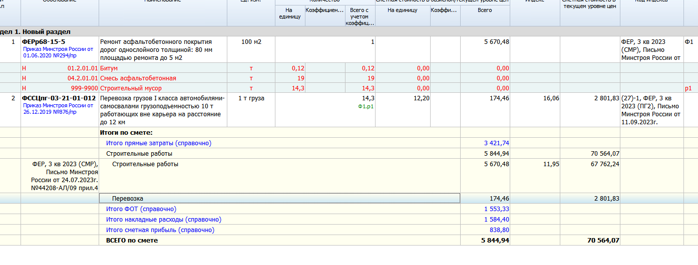 Подскажите гуру сметного дела. Раньше в старой нормативной базе в расценке на перевозку, стоимость была в прямых затратах, а сейчас разбита на ЭМ и ЗПМ. А индекс к тарифам на перевозку по прежнему один.