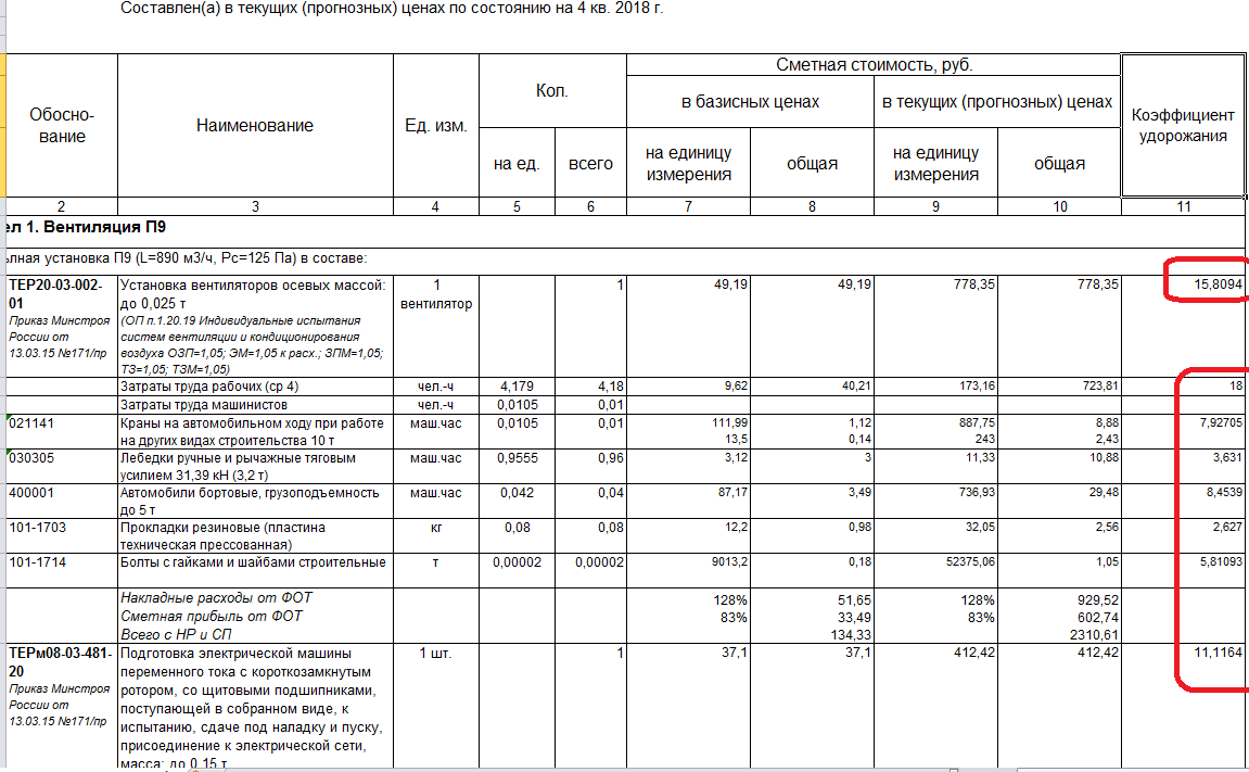 Ее переводят в текущие цены в локальной смете с помощью коэффициентов.