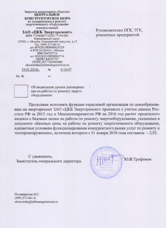 -Предельный инд. пересчета в тек. цены по ремонту энергетического оборудования ЦКБ Энергоремонт, 2003 г.: к=1,60