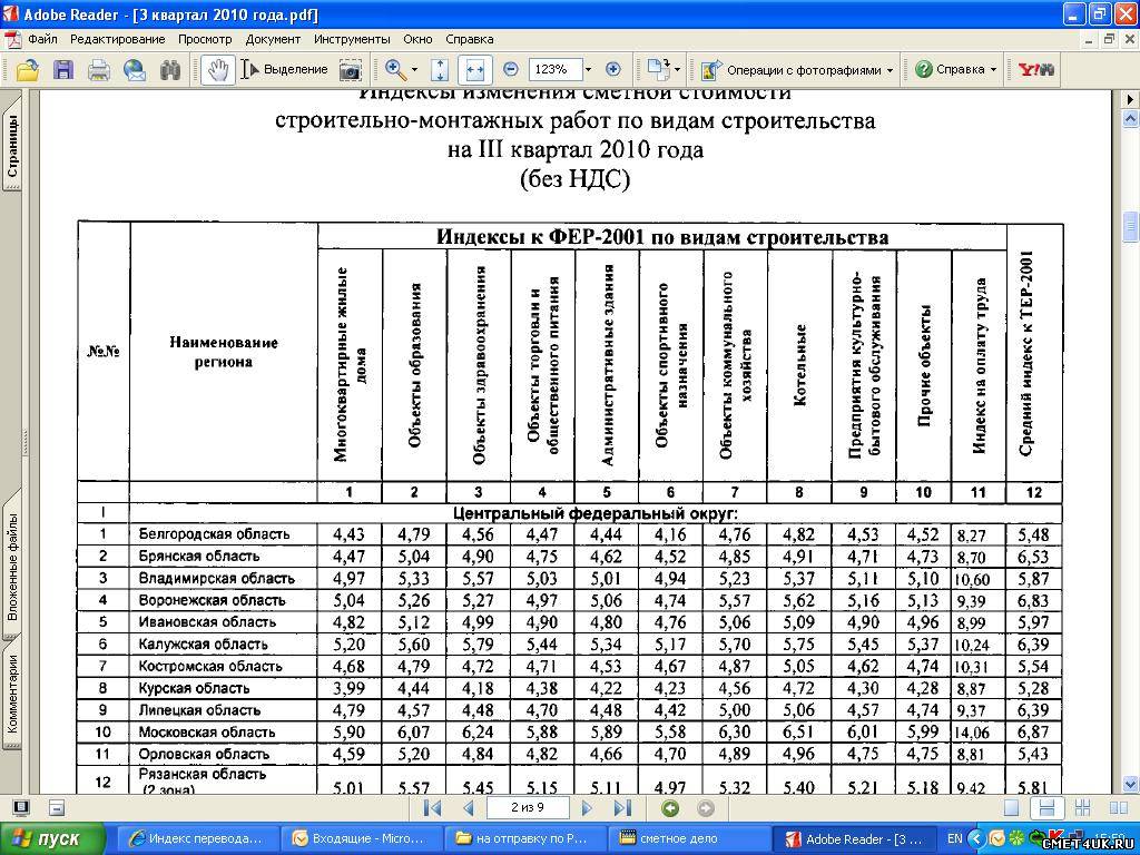 Речь об индексах на 3 квартал. Наверно, все видели, что там на СМР индексы расписаны для разных объектов и выделен столбец отдельно на з/п, а также один средний индекс к ТЕР.