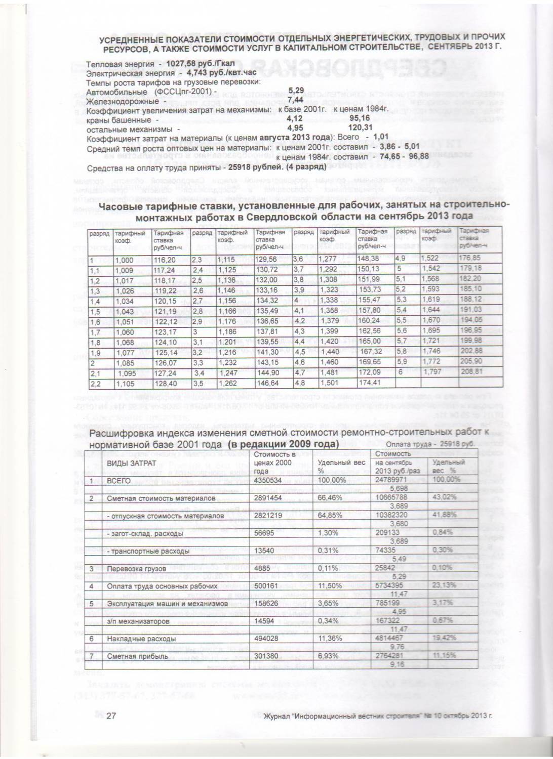 подскажите пожалуйста индексы на сентябрь 2013 по свердловской области, для ремонтно-строительных работ к база 2009 года по статьям затрат (ОЗП, ЭМ, МАТ).