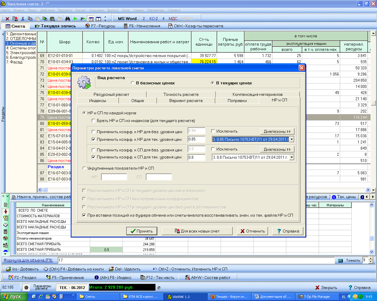 Доброе утро друзья. Что-то я вообще не пойму. я меняю галочки в НР и СП по видам работ, выходил из сметы сохранял ее, потом опять заходил, а сумма та же самая и осталась.