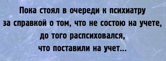 -Я всё бросил! И пить, и курить, и жену...! -А жену то зачем? -А не заслужила она такого счастья.