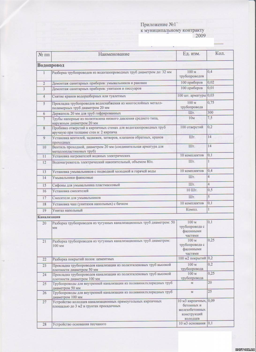 Всем спасибо за ответы! Однако большинство из Вас суть так и не уловили: 1. приложением к контракту, определяющим объем работ, является перечень работ а не смета (в перечне "установка унитаза" - это именно работа, попробуйте докажите, что туда и материал входит!) 2. в КС-2 конечно повтор материалов есть, но, если бы сметчик грамотно составил смету, с точки зрения выполнения контракта ничего бы все-равно не поменялось! объем и цена остались-бы как в заявке!