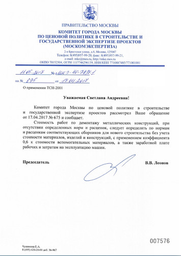 Денис, я пыталась, они придерживаются умозаключению, что применяем 0,6 к вспомогательным материалам, которые мы включим для демонтажа дополнительно, а не к тем, что сидят в расценке. Я им и объясняю, зачем я буду применять 0,6 к материалам, расход которых я учту именно для демонтажа? Грю уже наглядным языком: придет к вам сантехник и скажет мне для демонтажа ваших труб нужен 1 баллон пропана и 1 кислорода, а вы ему ответите, я тебе заплачу только 60%! Так что применение 0,6 к вспомогательным, которые учтены внутри расценки для МОНТАЖА, логично! Будем надеяться что внесут изменения!!!