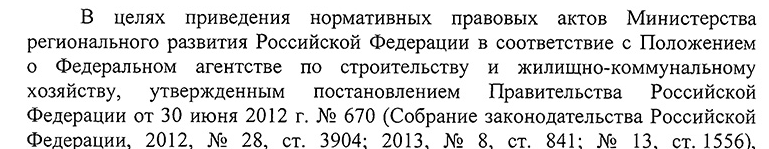 В целях приведения нормативно правовых актов Министерства регионального развития Российской Федерации в соответствие с Положением о Федеральном агентстве по жилищно-коммунальному хозяйству, утвержденным бла-бла-бла, приказываю:
