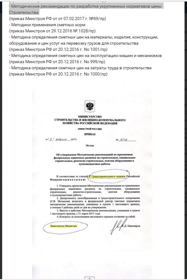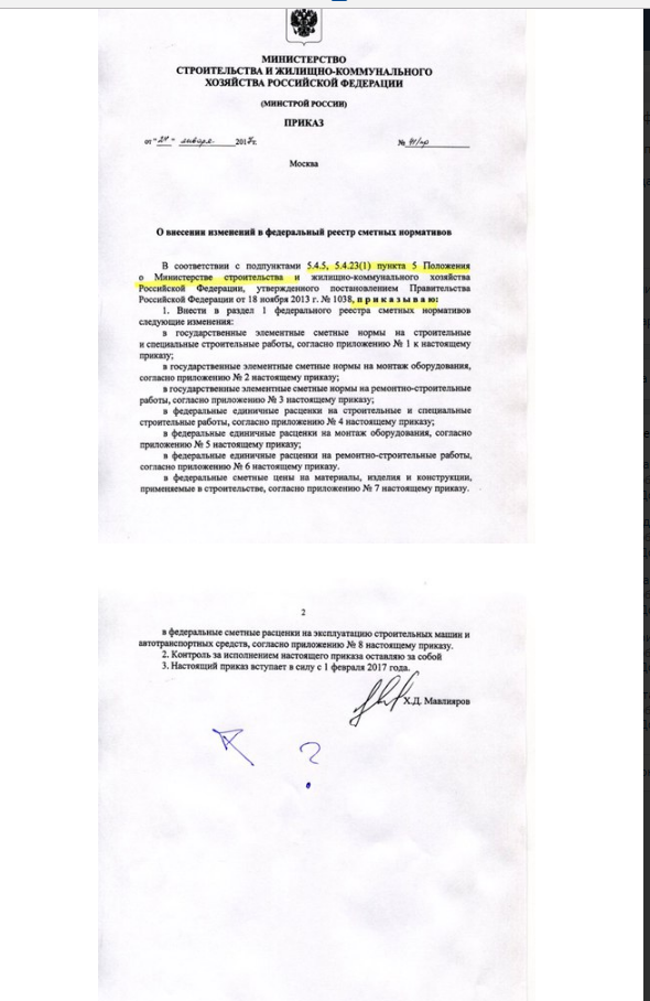 Новый порядок разработки и утверждения сметных нормативов дал очередной фальш-старт. Минюст его отклонил, о чем и написал в Минстрой письмом 01/6365-МГ, после чего приказ Минстроя от 20.12.2016 №995/пр, вводивший новый порядок разработки и утверждения сметных нормативов, был срочно отменен решением Министра М.Меня от 22.02.2017 №117/пр.