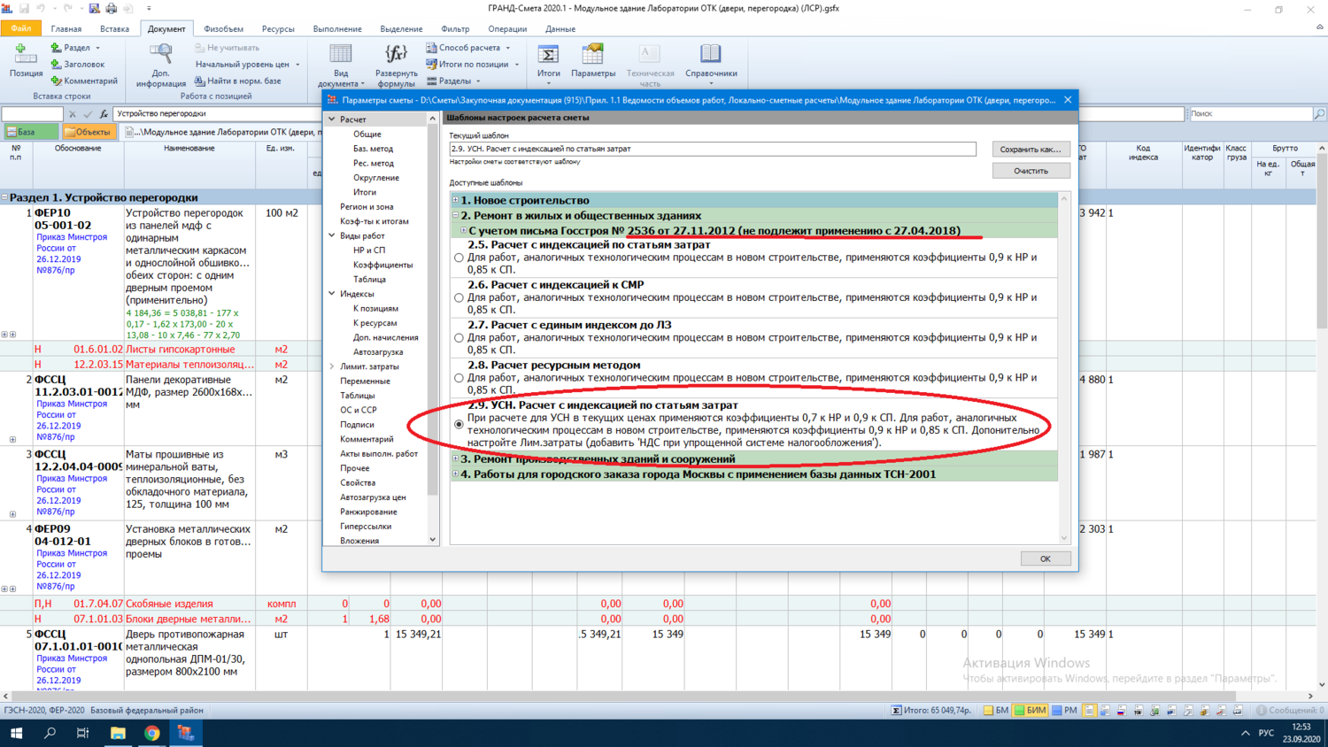 Сметчики заказчика просят применять письмо госстроя 2536. Приложил скриншот. Подозреваю что в их версии гранд-сметы каким-то образом не отображается выбранная галочка как у меня