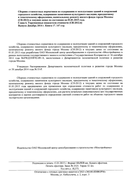 - Перечень ресурсов (материалов и машин) во многом соответствует ТСН-2001, перевозка материалов заложена до 10 км включительно за пределы МКАД. - Есть расценки на лифтовое оборудование. - Уборка снега с крыш заложена в расценке за 1 раз. - Материалы на "Цену поставщика" менять можно по согласованию с Заказчиком. - В расценках заложены в основном отечественные ресурсы (машины и материалы). - Инфляция в строительной отрасли за первые 2 месяца 2015 года составила по данным ОАО МЦЦС "Мосстройцены" менее 0,5%. - 26.12.2014 г. вышло Постановление №1521, которое утверждает с 01.07.2015 г. перечень стандартов и сводов правил.