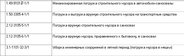 База будет обновляться раз в год. Надеюсь что расценки на мусор появятся с обновлением