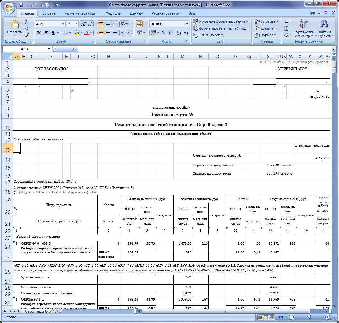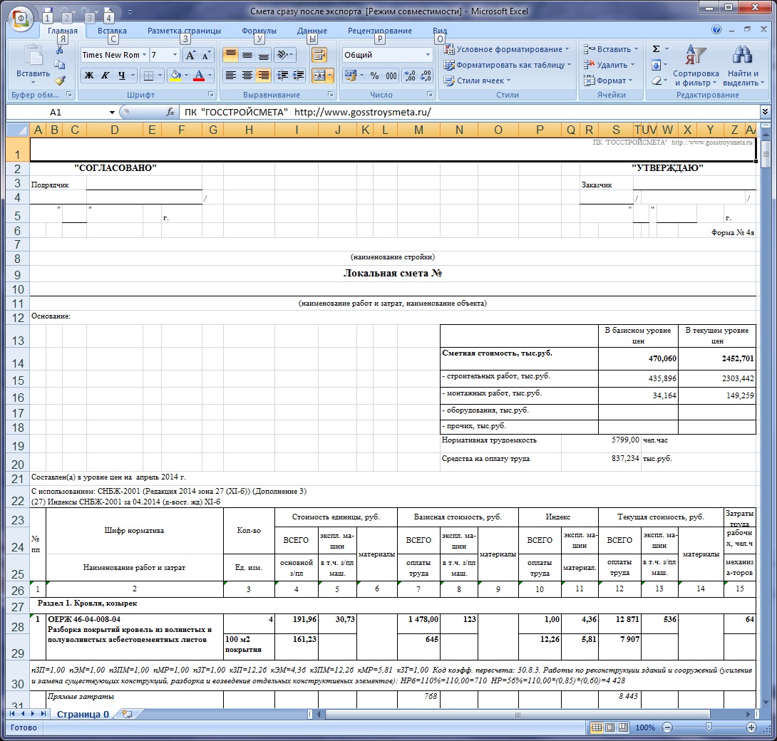 По печатной форме вижу, что используете 15-ти графку, но в титульной части изменена таблица на сумму только в текущих ценах. Может быть есть возможность отправить форму с домашнего компьютера?