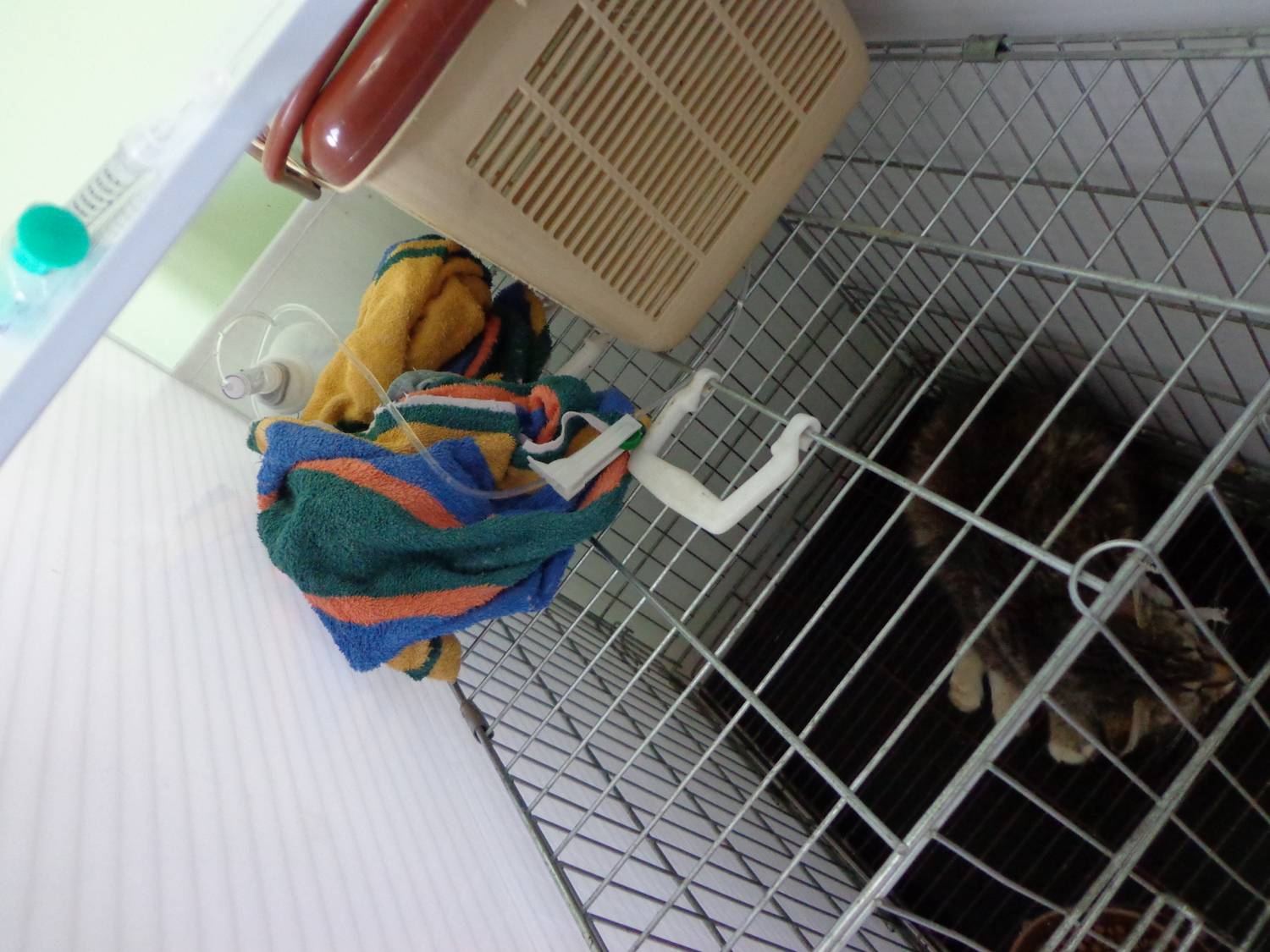 ТВК, сегодня была в стационаре. Лечат. Стоит капельница, прозерин - укольчики. Пеленки нам пока не нужны (видимо так удобнее - в лоточек все попадает сразу).