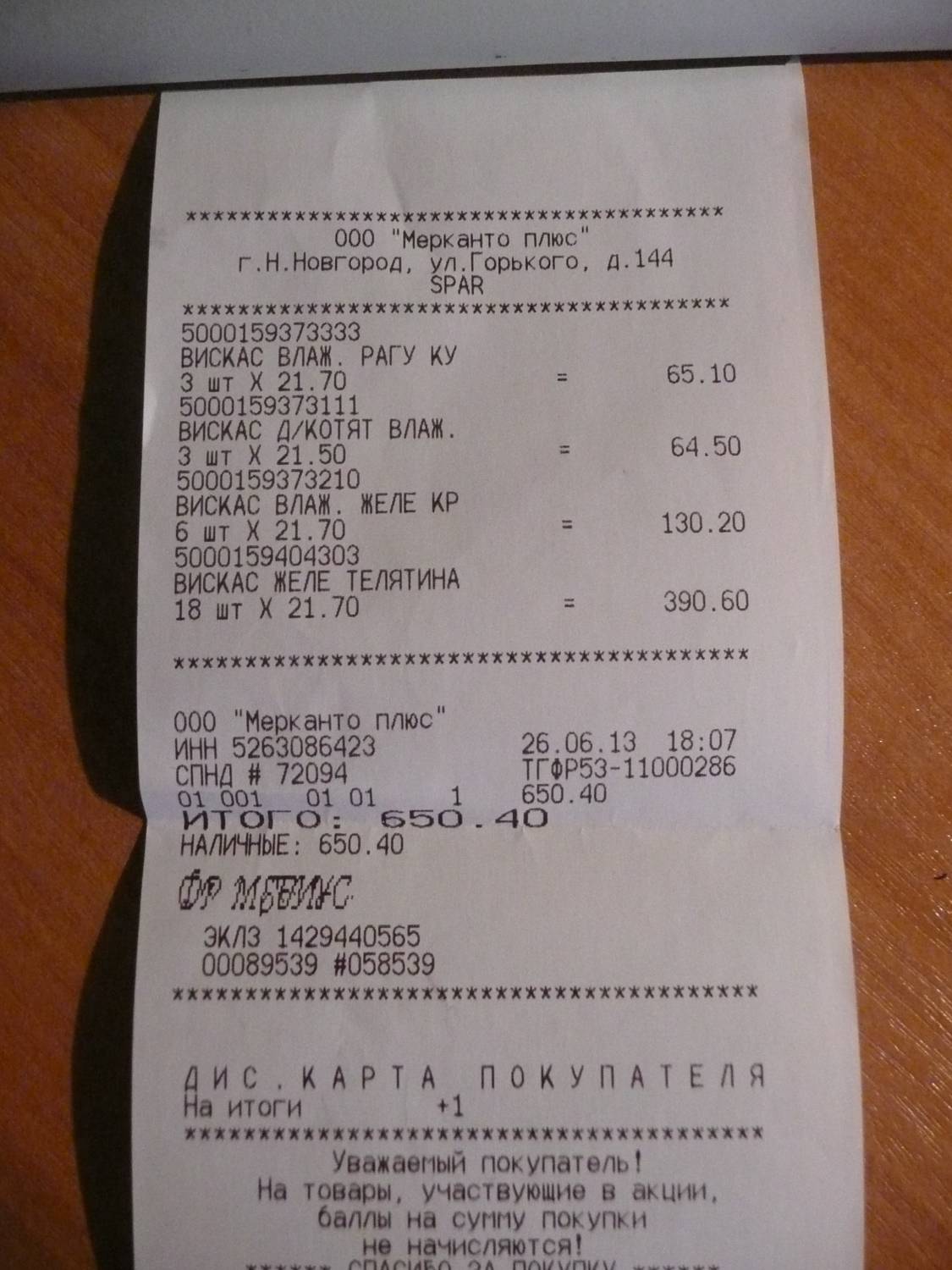 26.06.13 Никитина Д.Ю. (НН) 200 руб. наличные Сорокина Н.М. (НН) 500 руб. наличные Торопова Т.Г. (НН) 300 руб. наличные Пикина И.В. (НН) 100 руб. наличные Царева Н.Б. (НН) 1000 руб. наличные